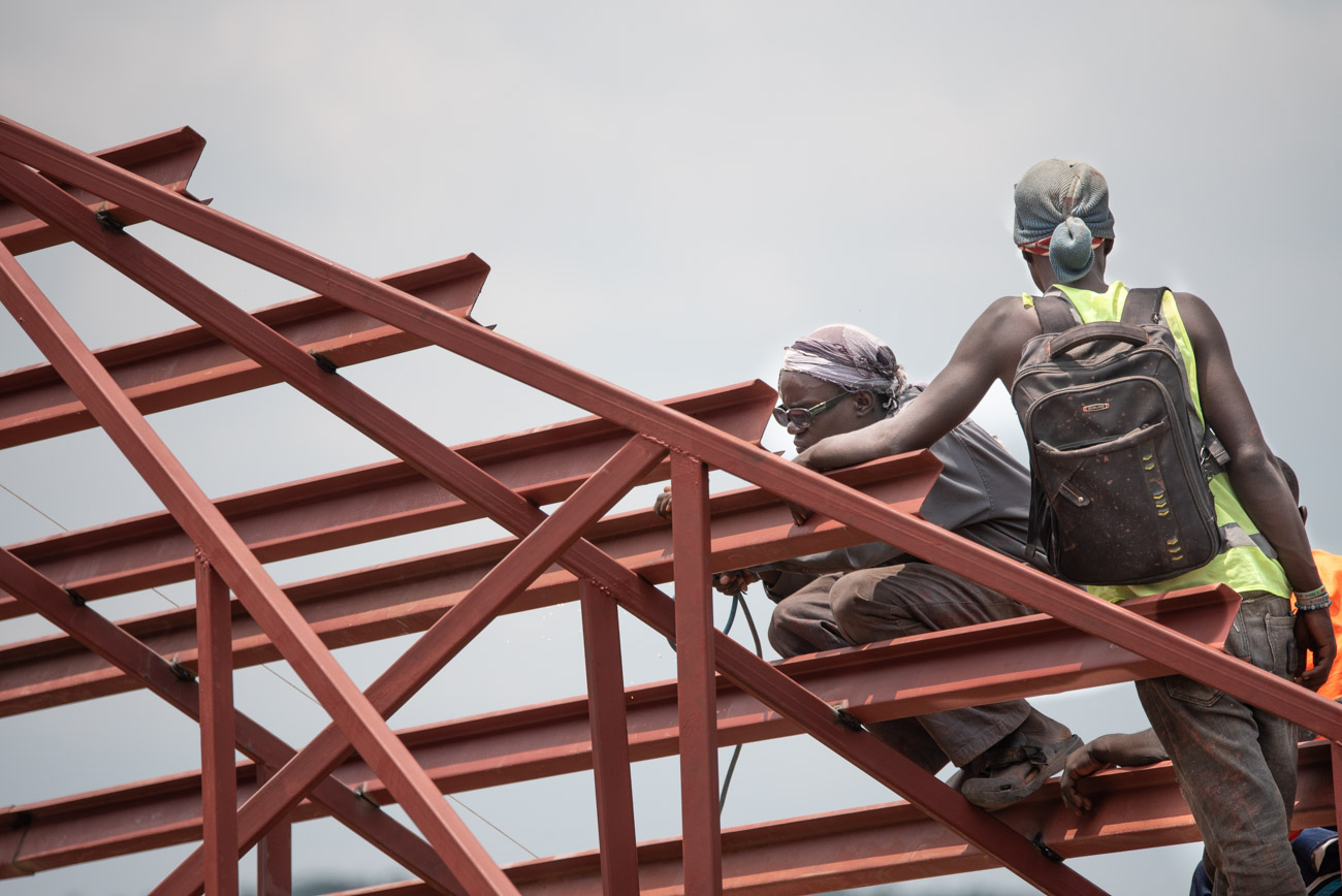 Erstaunlich, wie schnell das Dach hier gedeckt wird. In wenigen Tagen wird das Dach komplett geschlossen sein. Die Handwerker arbeiten den ganzen Tag bis zum Sonnenuntergang gegen 19.00 Uhr, auch am Samstag. Alles wirkt routiniert, auch wenn nicht alles den deutschen Arbeitsschutzbestimmungen entspricht.